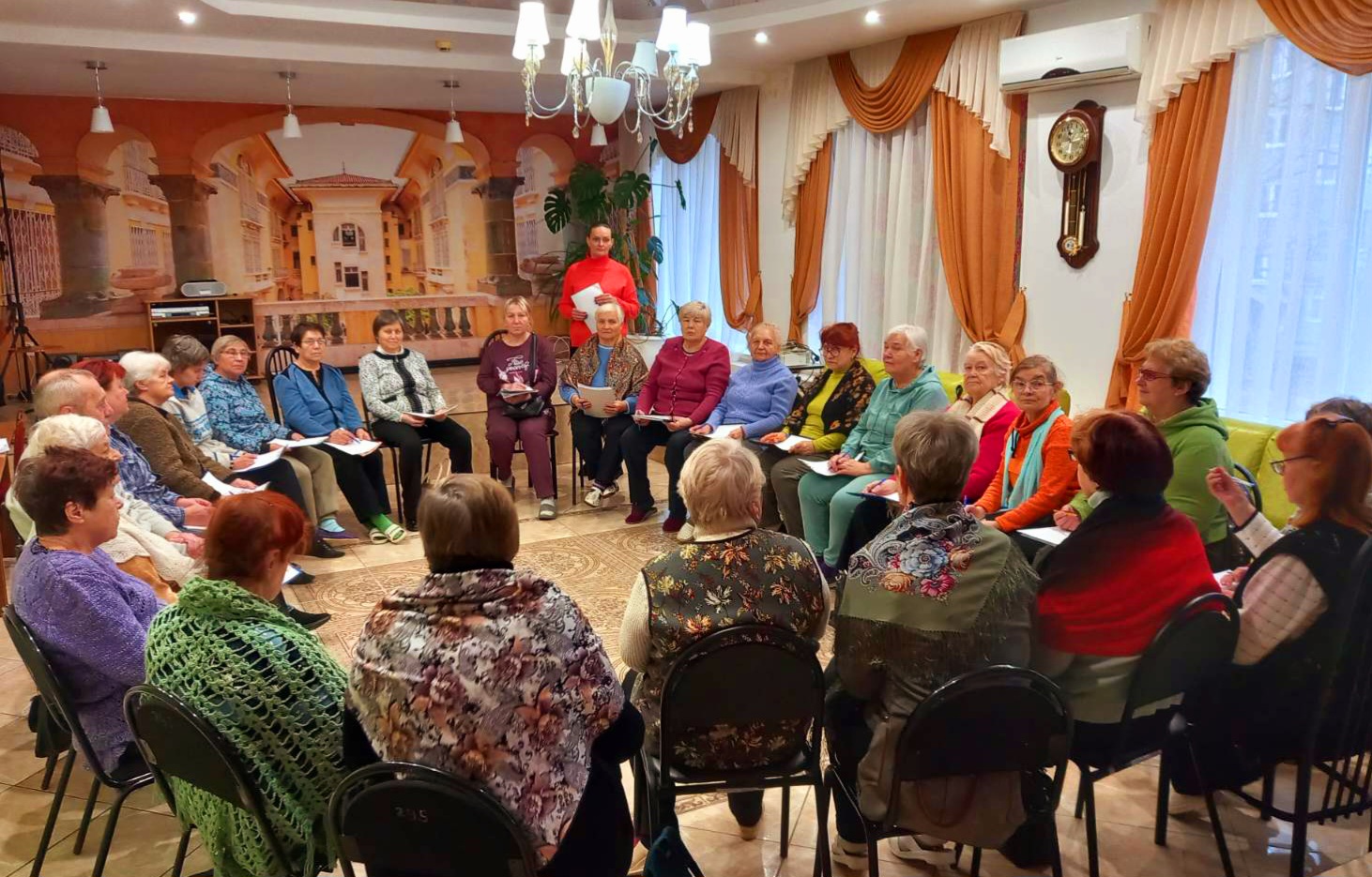 В рамках групповых занятий проводятся различные тренинги, общие лекции и беседы, которые завершаются обсуждением тем, а также рекомендациями по улучшению качества жизни. Одной из интересных форм работы является арт-терапия, цветотерапия и музыкотерапия. Эти методы позволяют участникам раскрыть свои творческие способности и таланты, что особенно важно в пожилом возрасте.