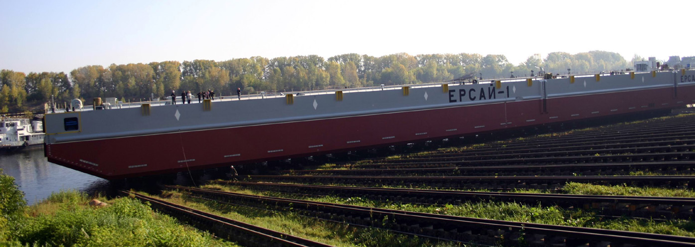 В октябре 2005 года, 20 лет назад, в Астрахань на стыковку была отправлена изготовленная на заводе несамоходная строительная баржа проекта «Ерсай-1» (правый понтон). Левый понтон