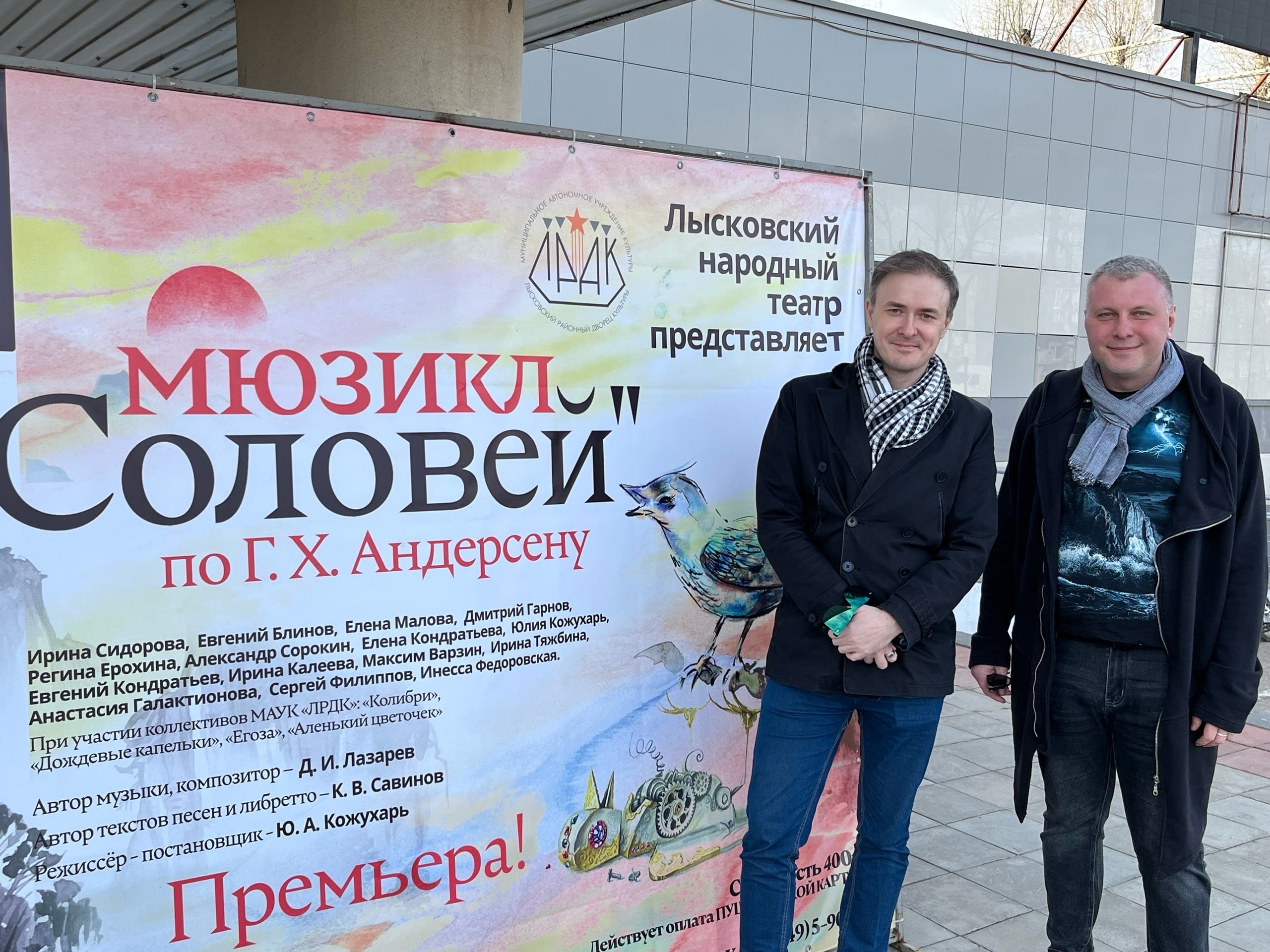 С поэтом, соавтором мюзикла «Соловей» Кириллом Савиновым. Лысковский народный театр, 2023 год