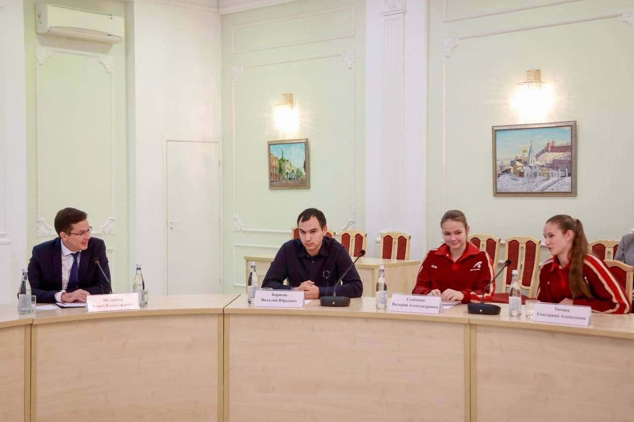 Глава Нижнего Новгорода Юрий Шалабаев встретился с игроками шести нижегородских спортивных клубов, которые получили новую стипендию для перспективных молодых игроков. Они уже закончили спортивные школы и теперь выступают за профессиональные клубы Нижнего Новгорода: ХК «Торпедо», ФК «Пари НН», БК «Пари НН», ПКМФ «Торпедо», АСКНО (Ассоциация спортивных клубов Нижегородской области, в которую входит ВК «Горький» и ВК «Спарта») и ХК «Старт».
