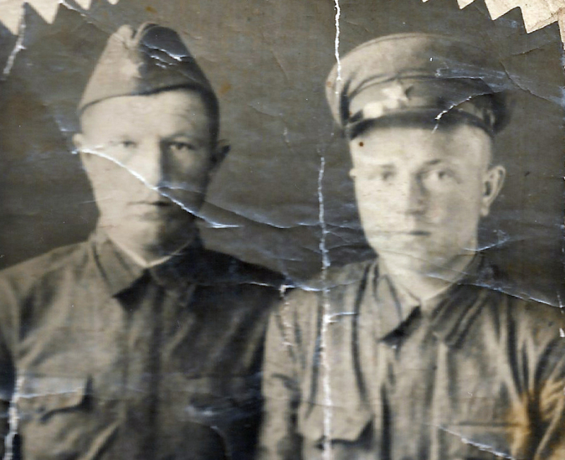 После армии отец приехал в город Горький и устроился на завод «Красное Сормово» в ремонтно-механический цех (ранее паровозный), строил паровозы). Когда началась война, цех начал выпускать танки Т-34. Рабочие, участвовавшие в сборке военной машины, получили «бронь». Отец был в их числе, но всё же ушёл на фронт добровольцем. Там он был ранен, а после излечения в госпитале попал на Ленинградский фронт и служил в 330-м стрелковом полку в звании младшего лейтенанта. Этот полк впоследствии был направлен на защиту плацдарма, площадь которого составляла 500 метров в ширину и 1500 метров в длину. Левый берег реки Невы был низкий, обрывистый, а правый –высокий, лесистый. Позднее этот «клочок земли» получил название «Невский пятачок».