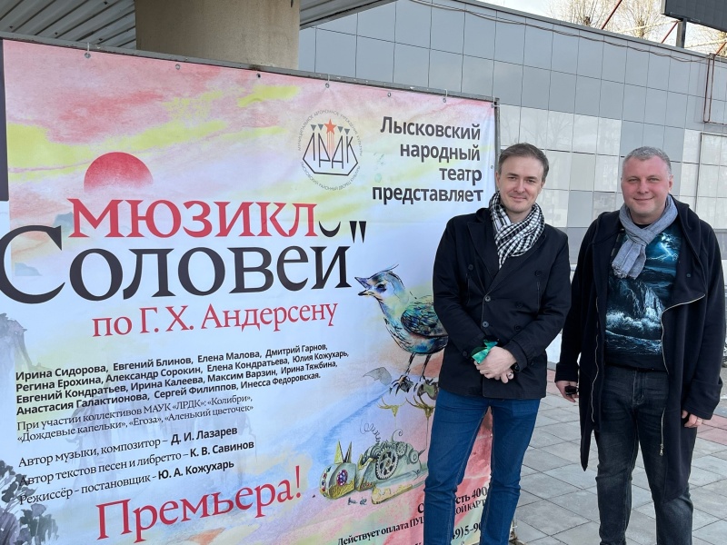 С поэтом, соавтором мюзикла «Соловей» Кириллом Савиновым. Лысковский народный театр, 2023 год