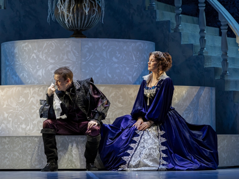 - Верно. Когда перед скромным секретарём замаячила возможность стать богатым и получить титул, Диана была к этому приложением. И при всём своём уме молодой человек ещё не понимал, что с ним могут довольно жёстко поиграть, приблизить - и внезапно оттолкнуть, обидеть. Одним словом, вдруг он «увидел» Диану и начал к ней присматриваться со всё возрастающим вниманием. Плюс сыграло роль уязвлённое самолюбие ветреного молодого мужчины: как это так? Меня тут все обожают и желают, а она вдруг мной играет? Непорядок, играть можно только мне! Так что тут и эмоциональные качели, и любовь вперемежку с ненавистью. И чем дальше, тем больше Теодоро увлекается Дианой, и начинает бороться уже за чувство, понимая, что Диане что-то сильно мешает. А Марселе достаётся обидная роль «запасного аэродрома». У Теодоро кипит всё внутри, то есть, конечно, кипит и у Морина, но внешне он достаточно сдержан, а здесь страсти выплёскиваюся ураганом, и вот ситуация становится неразрешимой. Совершенно в духе мелодраматической испанской пьесы безумно влюблённый Теодоро принимает решение уехать, расстаться навсегда, тем самым попытавшись себя излечить. И тут в дело вступает случай: плут Тристан приводит Теодоро то ли отца, то ли не отца, появление которого наилучшим образом устраивает Диану… Я лично вижу ситуацию так, что герои весь спектакль друг с другом борются: то он её за хвост потянет, то она его за лапу дёрнет, плюс ещё Диана борется и с внутренними установками. И, в общем-то, в этой борьбе они не победили, но всё спас счастливый случай.