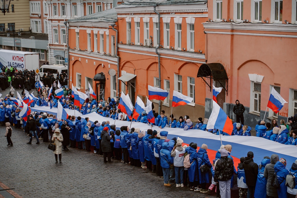 Четвёртого ноября, в День народного единства, в Нижнем Новгороде состоялось масштабное праздничное шествие, объединившее более 600 участников. Они прошли от Кремля до площади Народного Единства и развернули 100-метровый российский триколор.