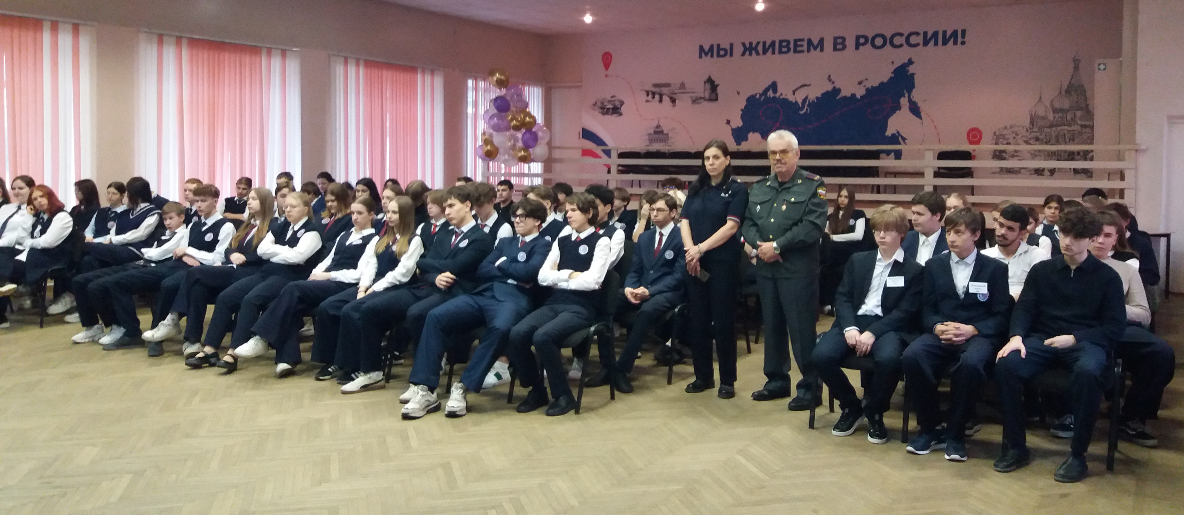 Михаил Касторский рассказал ребятам о Георгиевских наградах России, о званиях «Герой СССР» и «Герой РФ», об ордене Славы, имеющем Георгиевскую ленточку. Особое внимание было уделено нашим землякам, кавалерам этих наград, и при этом отмечено, что за время СВО 480 россиян стали Героями Российской Федерации. Также Михаил Касторский проинформировал ребят об условиях призыва и прохождения военной службы по призыву, о возможности получения дальнейшего образования в высших учебных заведениях Министерства обороны РФ и преимуществах получения такого образования.