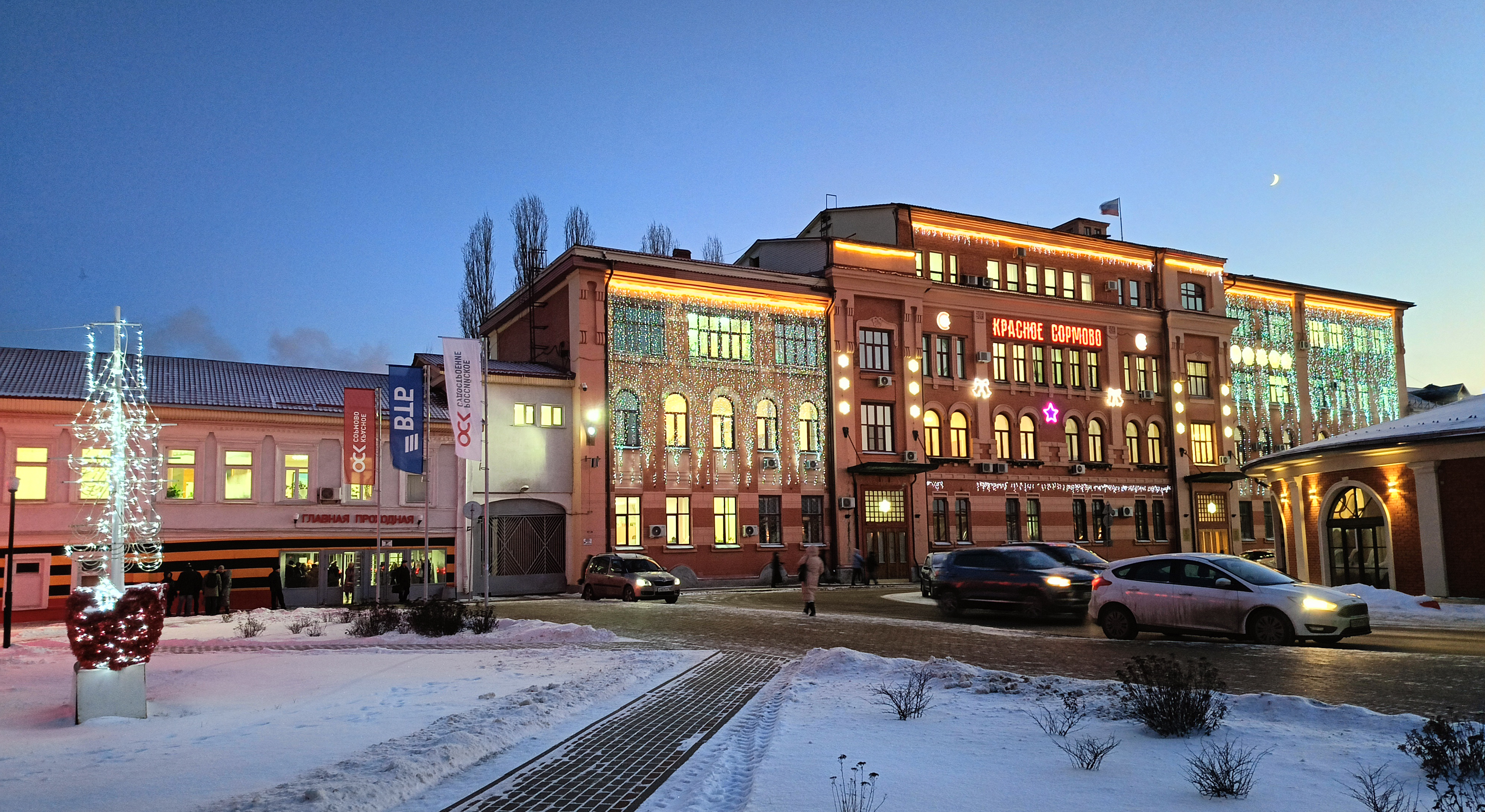 Яркая иллюминация украсила главный фасад заводоуправления и ДК «Красное Сормово».