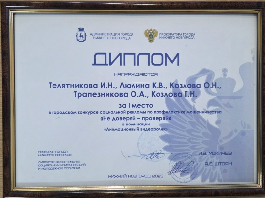 «Наши воспитанники ещё совсем юны для создания социальной рекламы на тему мошенничества, но мы решили принять участие в конкурсе педагогическим составом, ведь среди нас много творческих людей. Мы создали мультик, который будет понятен и интересен не только взрослым, но и детям, поэтому для самых маленьких он играет не только профилактическую роль, но и образовательную», – поделилась участница коллектива-победителя в номинации «Анимационный видеоролик», заведующая детским садом №464 «Лукоморье» Ирина Телятникова.