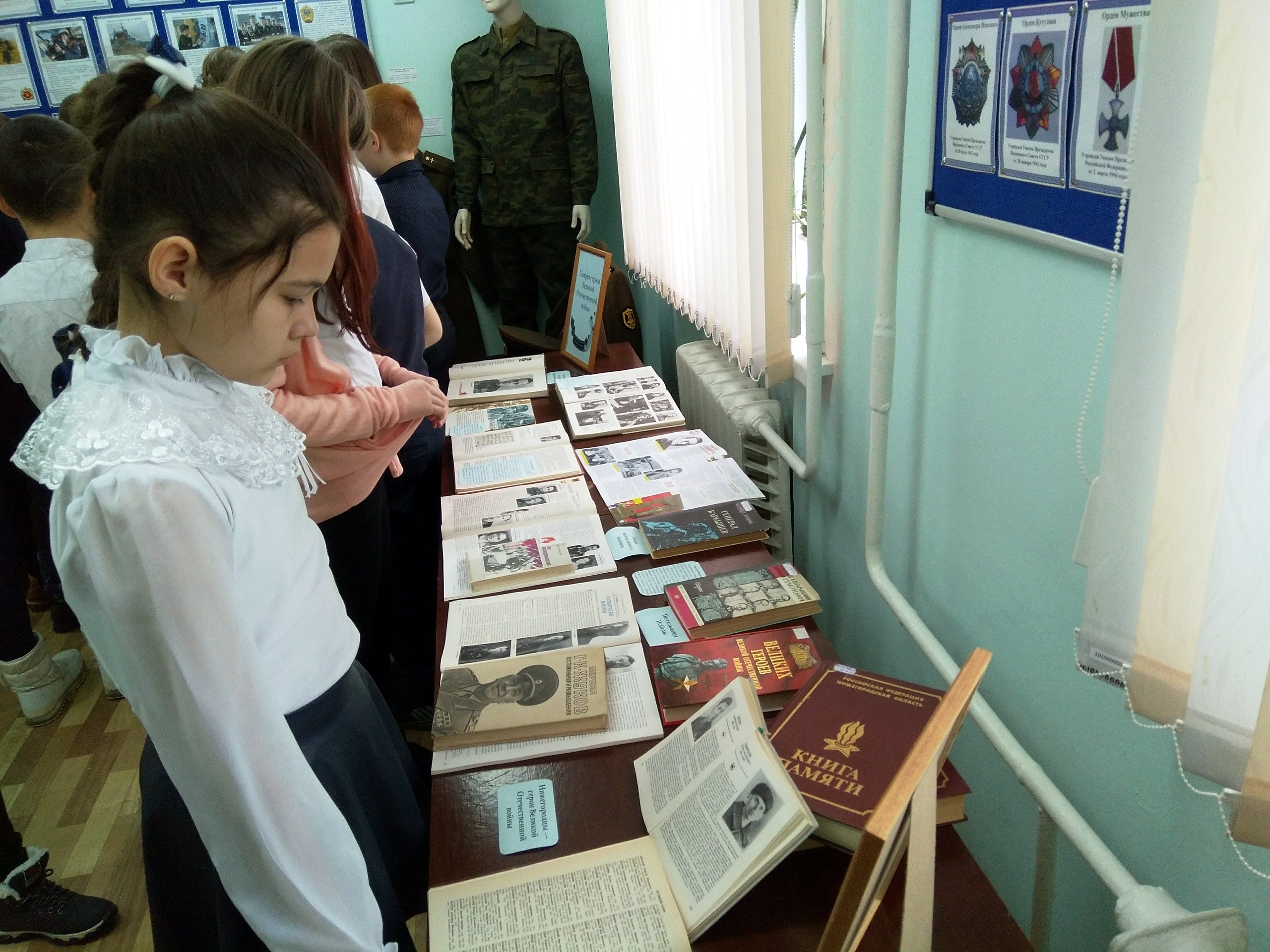 24 сентября был проведён час мужества, посвящённый героизму и подвигам наших земляков в годы Великой Отечественной войны. Ребята узнали, что уже в самый первый день войны, 22 июня 1941 года, тысячи горьковчан вступили в ряды Красной армии. На территории города Горького и области в годы войны было сформировано более 50 воинских соединений и частей. Более 300 уроженцев нижегородской земли получили звание Героя Советского Союза, а лётчики А.В. Ворожейкин и В.Г. Рязанов удостоены этого звания дважды. В ходе мероприятия подростки посетили музейную экспозицию «Памяти солдата», находящуюся в библиотеке, и познакомились с экспонатами времён Великой Отечественной. Это предметы солдатского быта: фляжка, кружка, ложка, керосиновая лампа, гармонь, а также настоящая солдатская гимнастёрка, пилотка и другие экспонаты.
