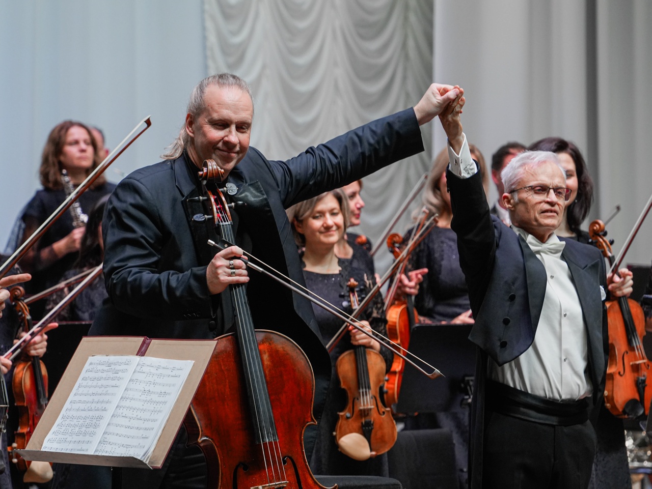 И так невероятны были звуки виолончели и оркестра под управлением главного дирижёра, народного артиста России Владимира Понькина, и так много горячих слов любви к ушедшим гениям было сказано (кроме Ольги Томиной, ещё и Артёмом Варгафтиком), что их присутствие в зале, пусть и незримо, ощущалось мощной энергетической волной! И даже букеты цветов летали по сцене, когда Денис Шаповалов решил отблагодарить за игру валторниста...
