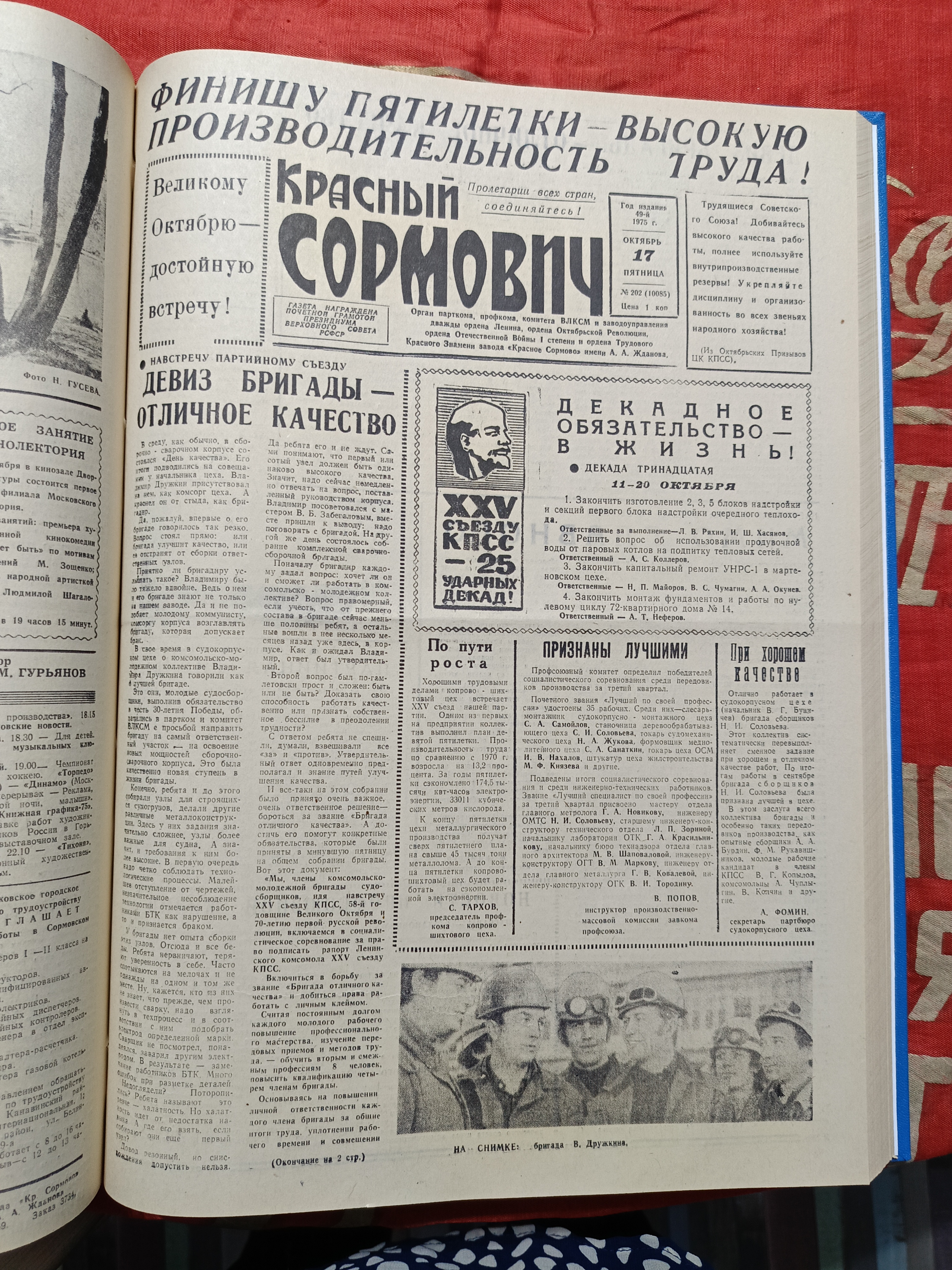 Пятьдесят лет назад, 17 октября 1975 года «Красный сормович» вышел под девизом «Великому Октябрю – достойную встречу!». Газета наполнена обязательствами повышения качества, хороших темпов работы, экономичного, рачительного отношения к производству.
