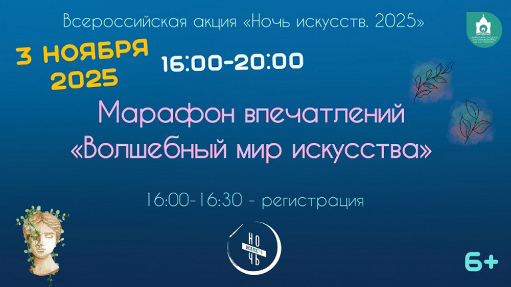 3 ноября с 16.00 до 20.00 в Центральной городской детской библиотеке им. А.М. Горького (ул. Ефремова, 2) состоится ежегодная Всероссийская акция «Ночь искусств – 2025».